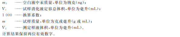 稱取固體試樣0.2g~1.0g(精確到0.001g),新鮮樣品0.5g~2.0g或液體試樣吸取1mL~5mL稱量(精確到0.001g),置于消解內(nèi)罐中,加入5mL硝酸浸泡過夜。蓋好內(nèi)蓋,旋緊不銹鋼外套,放入恒溫干燥箱,140℃~160℃保持4h~5h,在箱內(nèi)自然冷卻至室溫,然后緩慢旋松不銹鋼外套,將消解內(nèi)罐取出,用少量水沖洗內(nèi)蓋,放在控溫電熱板上或超聲水浴箱中,于80℃或超聲脫氣2min~5min趕去棕色氣體。取岀消解內(nèi)罐,將消化液轉(zhuǎn)移至25mL容量瓶中,用少量水分3次洗滌內(nèi)罐,洗滌液合并于容量瓶中并定容至刻度,混勻備用;同時作空白試驗(yàn)。