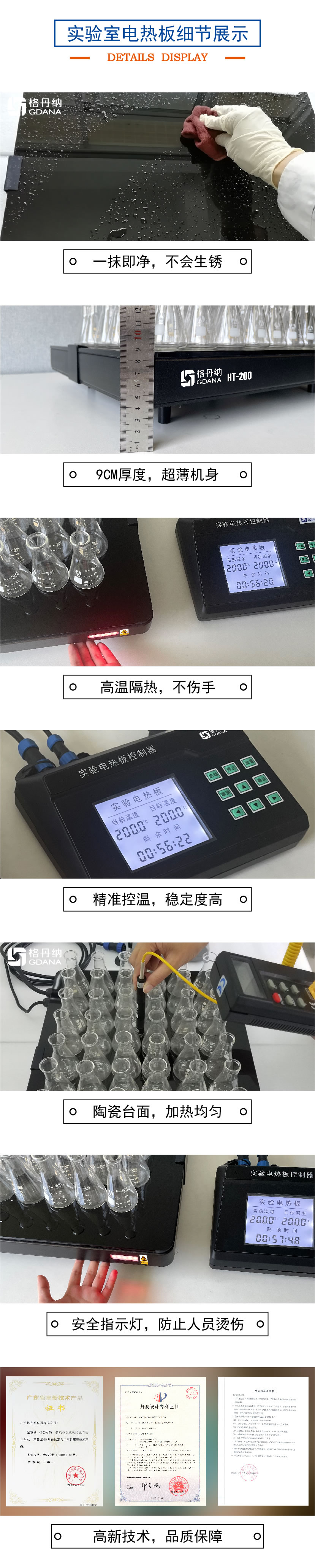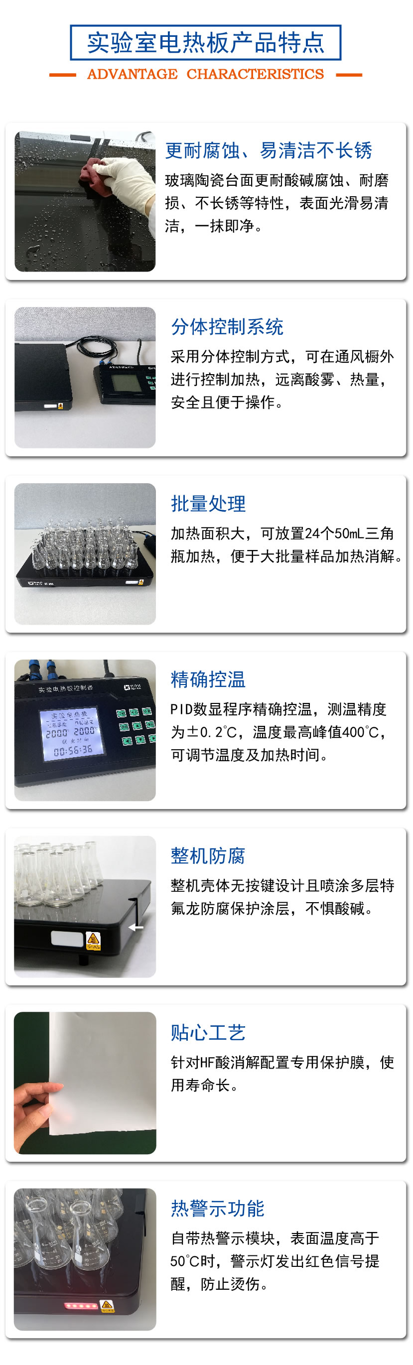 3.加熱面積比普通正規的電熱板要大,便于批量樣品處理,從而節省時間、節省成本。