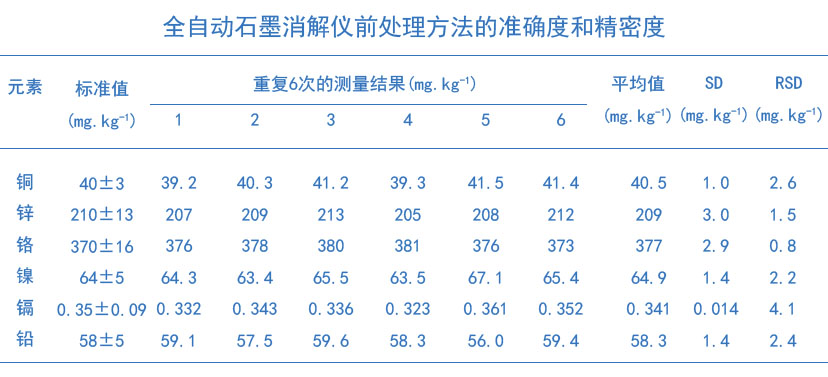本文通過格丹納全自動石墨消解儀,采用雙氧水代替高氯酸,使用硝酸-氫氟酸-雙氧水體系通過全自動石墨消解儀進行程序消解,測定常規(guī)土壤中銅、鋅、鉛、鎘、鉻、鎳等元素,該法的改進有利于提高重金屬分析的效率,避免高氯酸的使用不當造成元素損失,相對傳統(tǒng)方法消解處理更加快速、消解完全,操作簡單智能化,同時危險性大大降低,也減少了人工操作過程產(chǎn)生的誤差,使檢測數(shù)據(jù)更加準確。