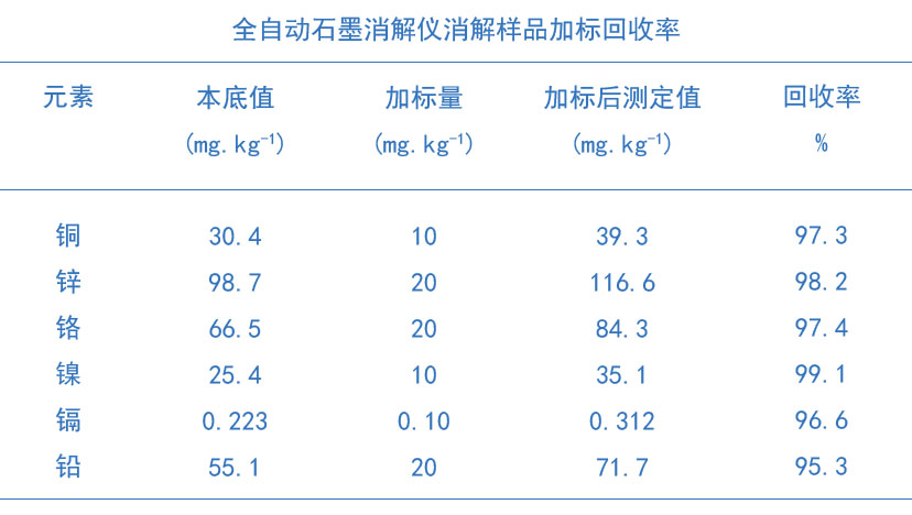 格丹納全自動石墨消解儀對土壤樣品消解方法加標測定回收率結(jié)果如下表: