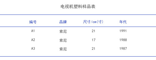 廢電視機外殼塑料樣品信息如表1所示,依次編號為A1?A3。將采集到的大塊塑料樣品,用去離子水超聲清洗表面30min,干燥后用破碎機將其破碎成1cmx1cm以下的小塊,液氮冷凍后用高速粉碎機進行粉碎,再過40目篩。