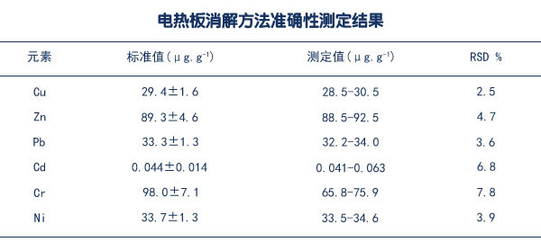電熱板消解方法準(zhǔn)確性測(cè)定結(jié)果