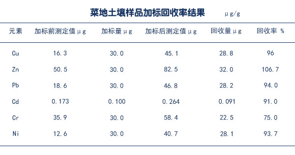 菜地土壤樣品加標(biāo)回收率測(cè)定結(jié)果
