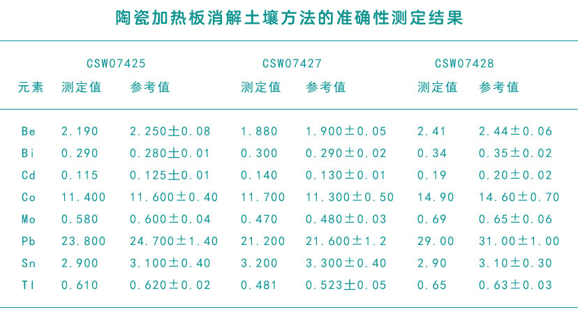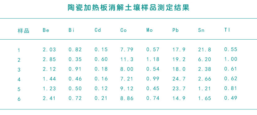 陶瓷加熱板消解土壤樣品測定結果